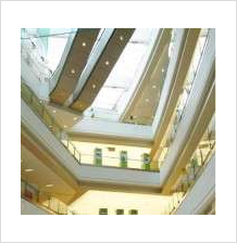 中庭是商场的缓冲区域和公众活动空间,并增加商场的开阔感,调节空气质量,提升整个商场的空间质量和层次。因此中庭照明设计应具有一定的艺术性,装饰空间并营造舒适的环境。 中庭建设一般都有自然采光的设计,但是夜间营业必需依靠人工照明。空间高大的中庭顶部宜采用筒灯照明,为改善顶部照明的不足,墙壁也可设置壁灯照明,同时也可以丰富空间层次。